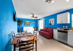 1 Bed/1 Bath in Cape Canaveral. Accommodations include: Queen bed and a Queen sized pull-out in the living room. Flat screen TV’s in the Bedroom and Living room. Free WiFi, full sized appliances, toaster, blender and coffee maker. Shared washer and dryer are coin operated on property. Beach towels and beach toys and chairs are provided for guest's convenience. There is an outdoor shower for rinsing off after the beach days and a semi-private patio for enjoying the warm Florida weather.