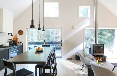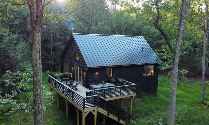 Relax in this beautiful architect designed cabin in the woods. Enjoy grilling on the deck and the sounds of song birds in the summer. Or enjoy the sauna and sit inside by the fire during the winter. No matter what time of year you will be able to recharge in this Catskills getaway. We hope you enjoy this brand new space as much as we do!