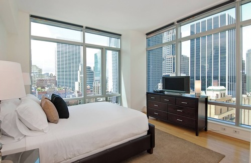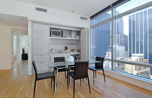 This contemporary two-bedroom apartment is situated in a high-rise building near Rockefeller Center, offering the perfect mix of Midtown excitement and Manhattan sophistication. The apartment features 14-foot ceilings and floor-to-ceiling windows, as well as hardwood floors, stainless steel appliances and an in-unit washer/dryer. All beds provided are fitted with plush linens and pillows. All Furnished Quarters apartments include 24/7 guest service.Pets are allowed in select apartments and are subject to a $500 non-refundable pet sanitation fee for one pet, $750 for two pets. Additional charges and size/breed restrictions may apply and vary by building. All pets must be approved by Furnished Quarters. Please let us know ahead of booking if you plan on traveling with a pet.