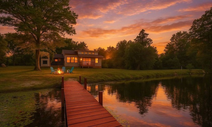 Nature Escape | Pond Dock Fire Pit Trails | House in Bluemont