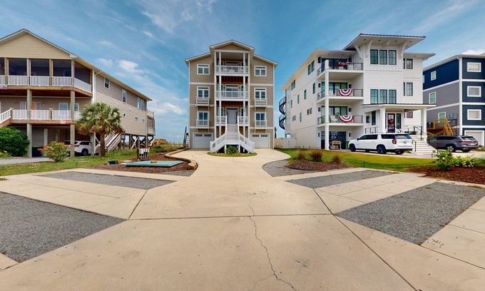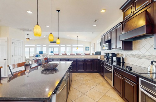 Three levels of oceanfront porches ensure that every last person in your family can find a special spot to claim! Allow the ocean to work its soul magic as you relax in one of the Adirondack chairs or rocking chairs, or at a dining table. There is also a grill for you to use. You may just find yourself spending more time outside than in. And between the full-length porches and the incredible pool deck, who could blame you?