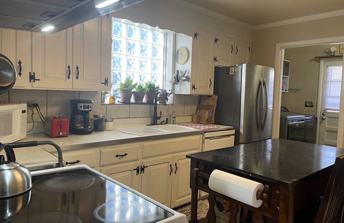 Plates, utensils, glasses, and refrigerator are all available for use in the kitchen. We ask that guests refrain from helping themselves to items in the refrigerator or pantry, however.