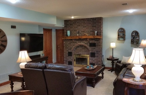 A peaceful and private getaway on 3+ acres in a small country neighborhood. This lovely place sits on a private lane just off 291 Highway and is just 1½ miles from access to I-49 making it quick and easy to enjoy all the amenities of the Kansas City Area; then retire from the hustle and bustle of the city.